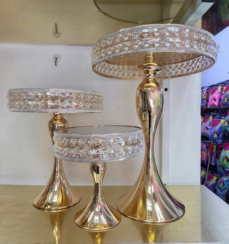 Set de Bases de Dulces Dorado con detalle en cristal Falso