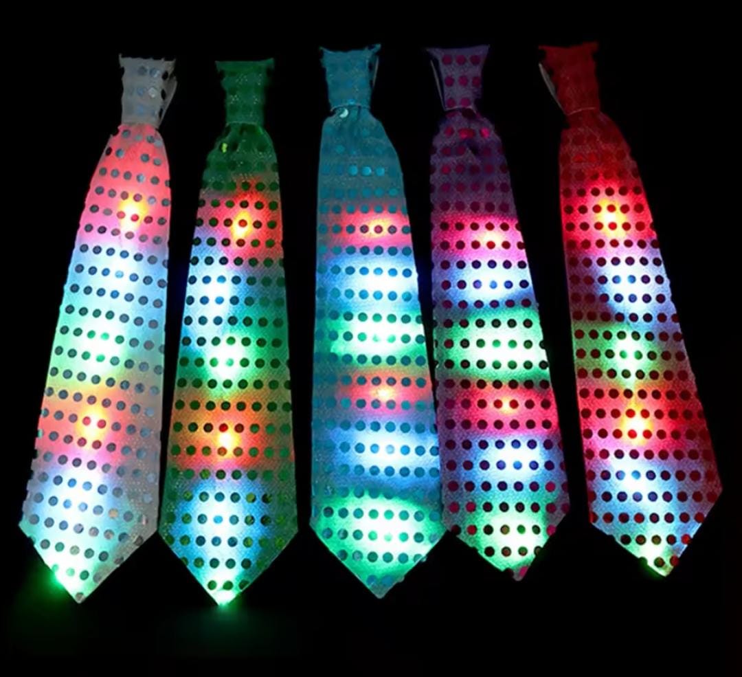 Corbatas con luces cuentan con botón de encendido y apagado. Por la compra de 6 docenas lleva 1 docena GRATIS!