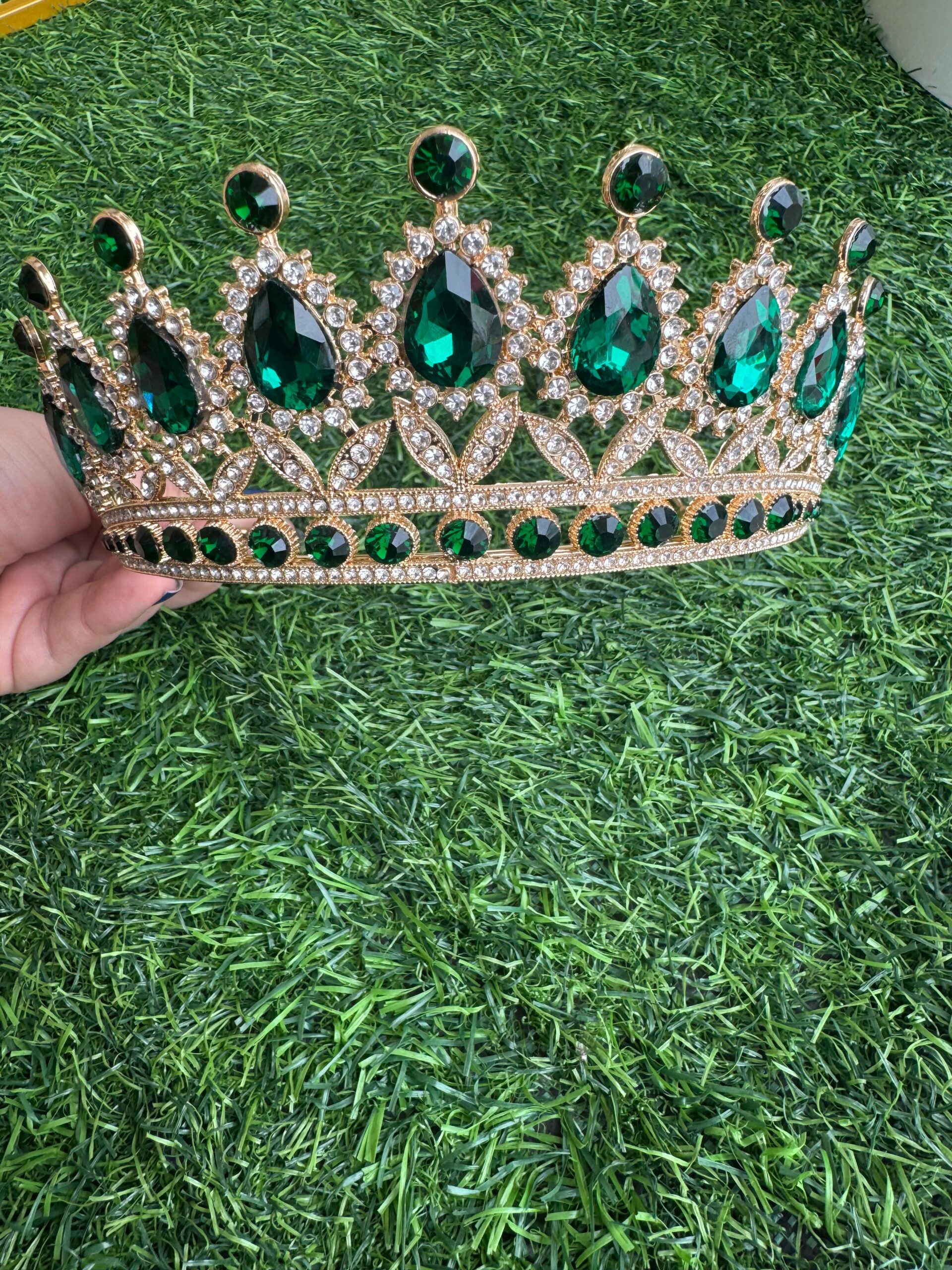 Corona Verde Elaborada con piedras falsas en color Verde con metal color Dorado