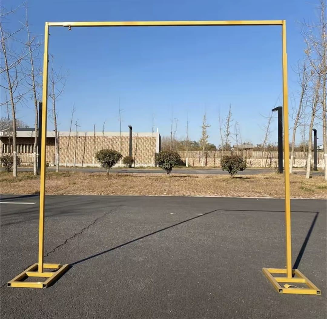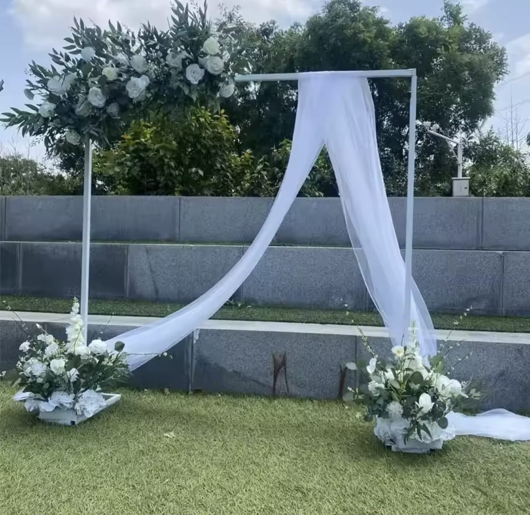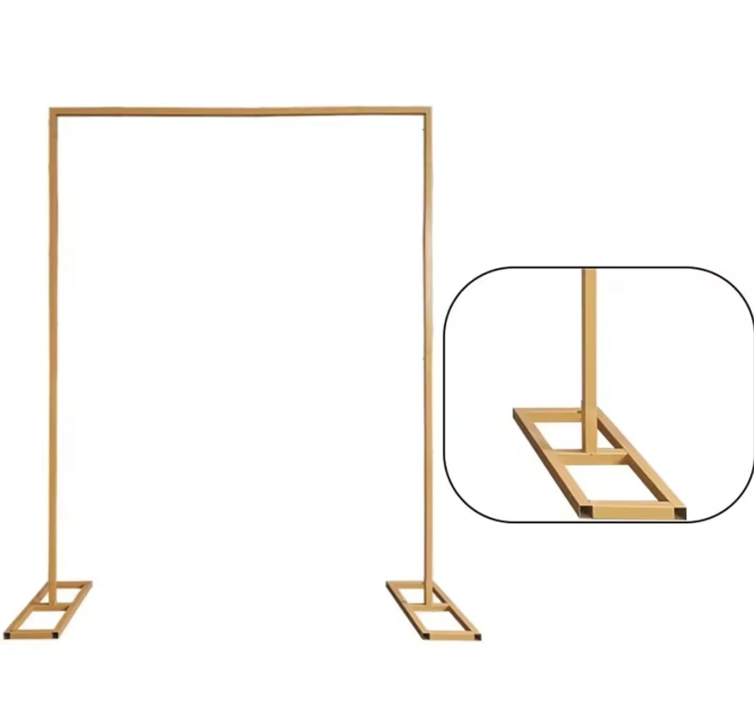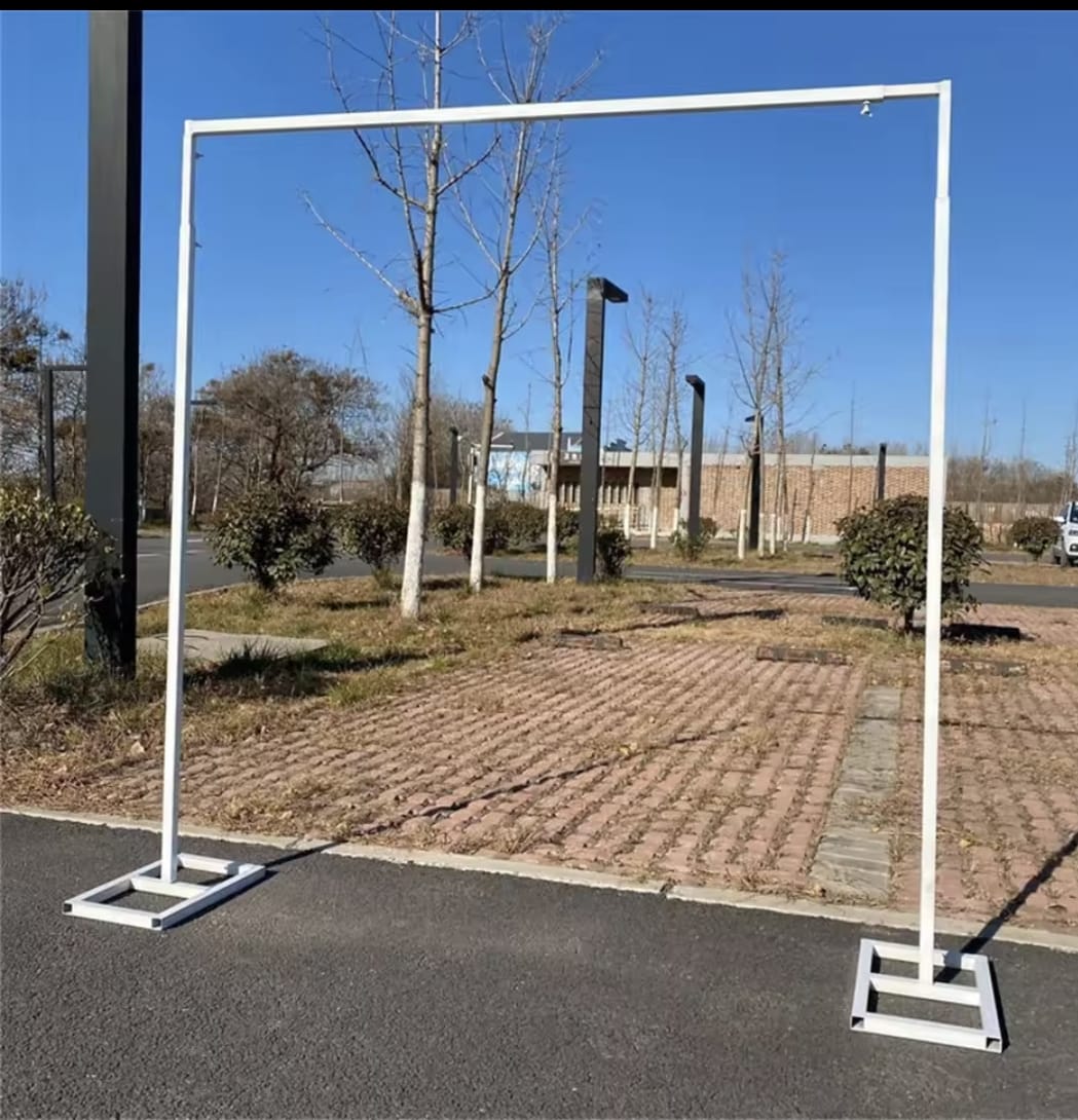 Estructura de Metal , ligera para traslados , totalmente desarmable , ajustable a un Máximo de 3 metro de alto y ancho y un mínimo de 1.60 metros de alto y de ancho. Además es ideal para realizar decoraciones con Shimmer wall , ya que logra soportar suficiente peso.
