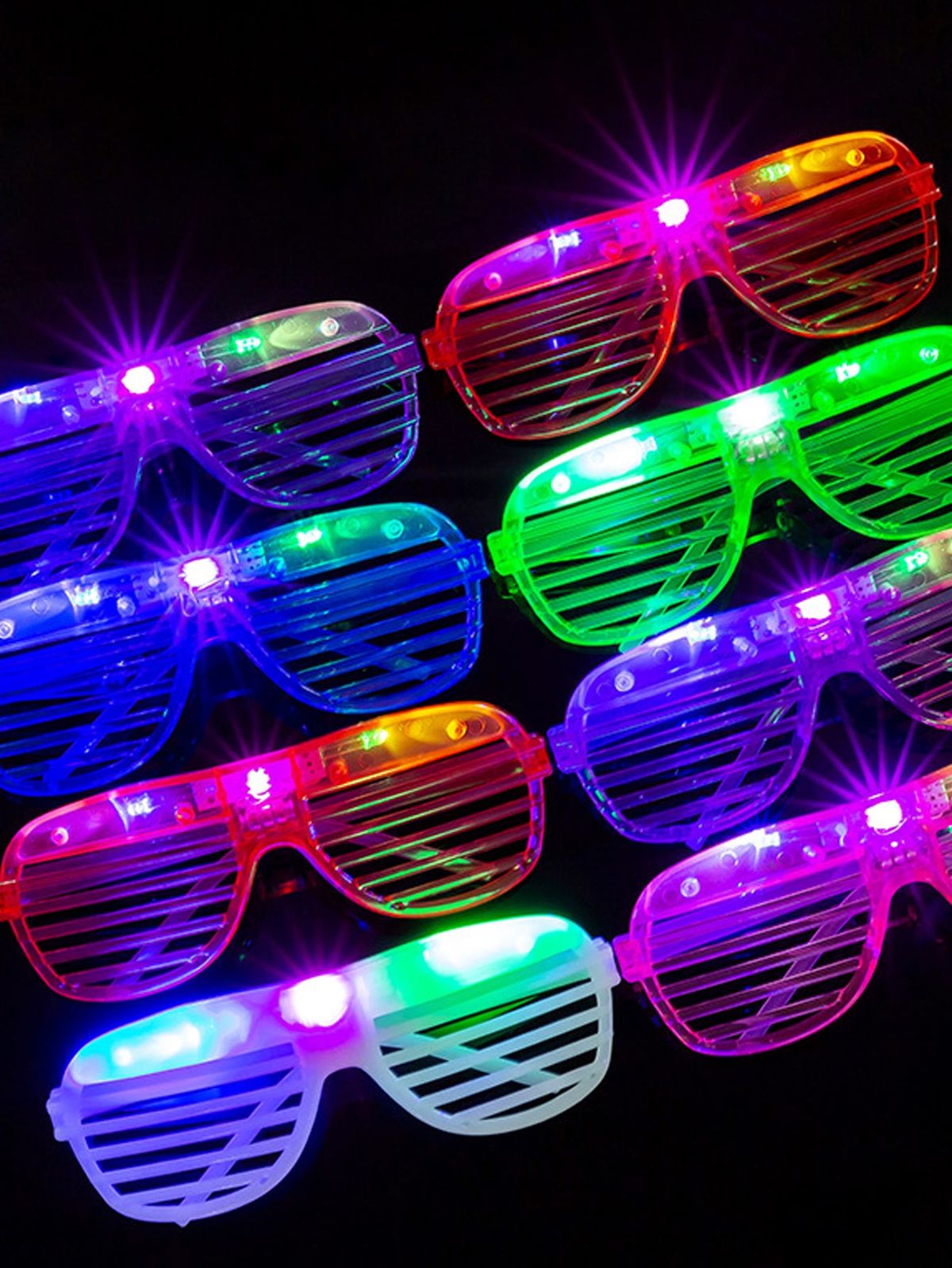 Lentes con luces en la parte superior, cuentan con botón de encendido y apagado. Por la compra de 6 docenas lleva 1 docena GRATIS!