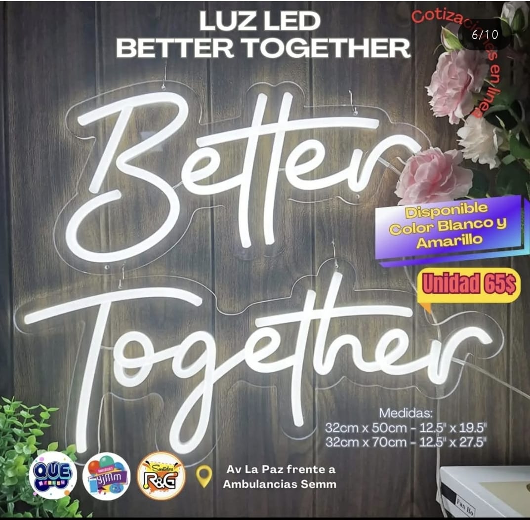 Letrero Led Better Together funciona con corriente