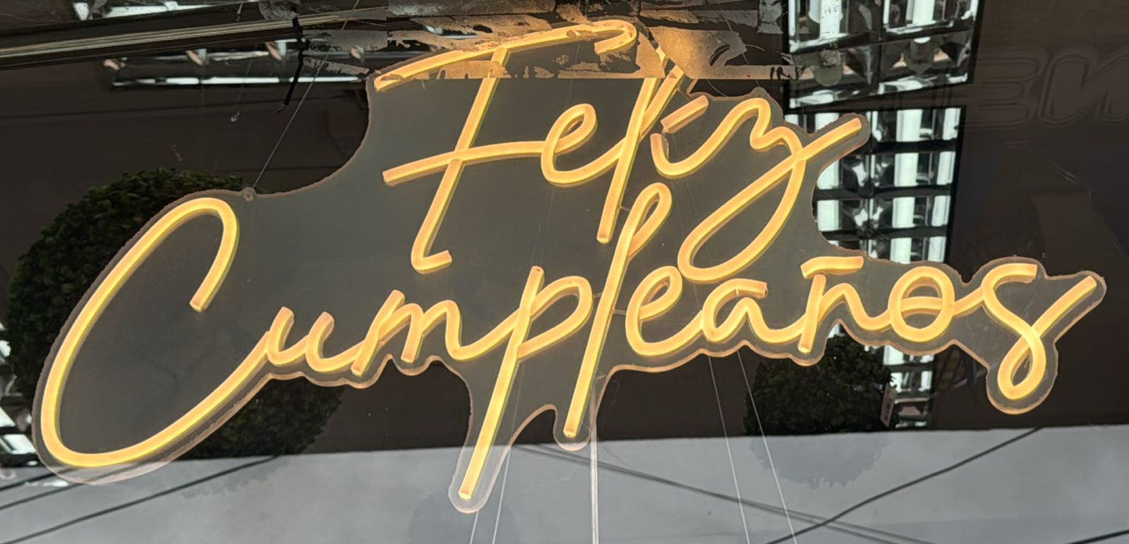 Letrero led Feliz Cumpleaños luz cálida en acrílico funciona con corriente, enchufes 110v.