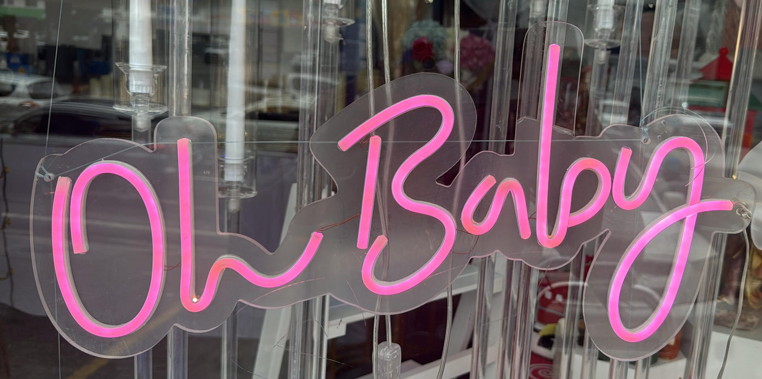 Letrero led Oh Baby en acrilico luz rosada funciona corriente, enchufe 110v.