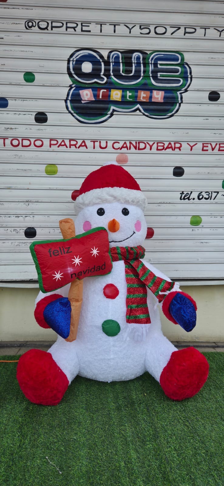 Muñeco de nieve inflafle, con tela de peluche y diferente texturas , ademas cuenta con luz interna, mide 1.20 metros(47 pulgada) de Alto