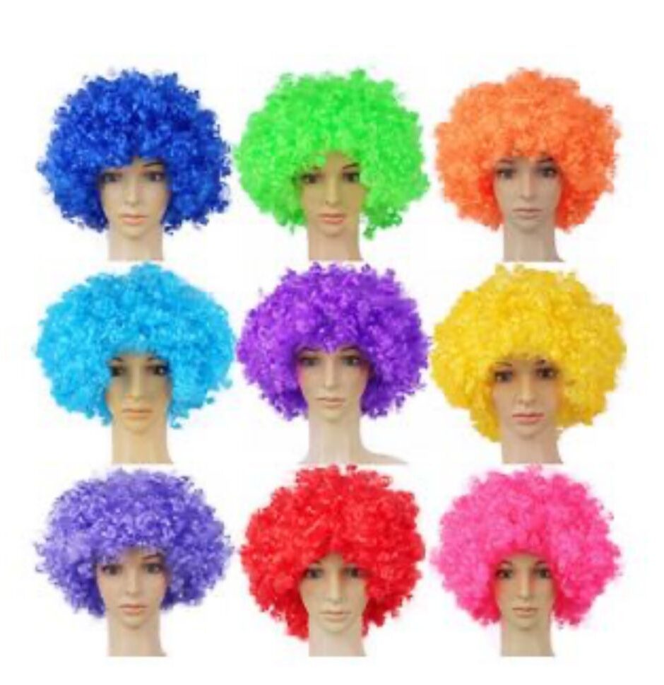 Pelucas afro consultar colores disponibles (vía Whatsapp). Por la compra de 6 docenas lleva 1 docena GRATIS!
