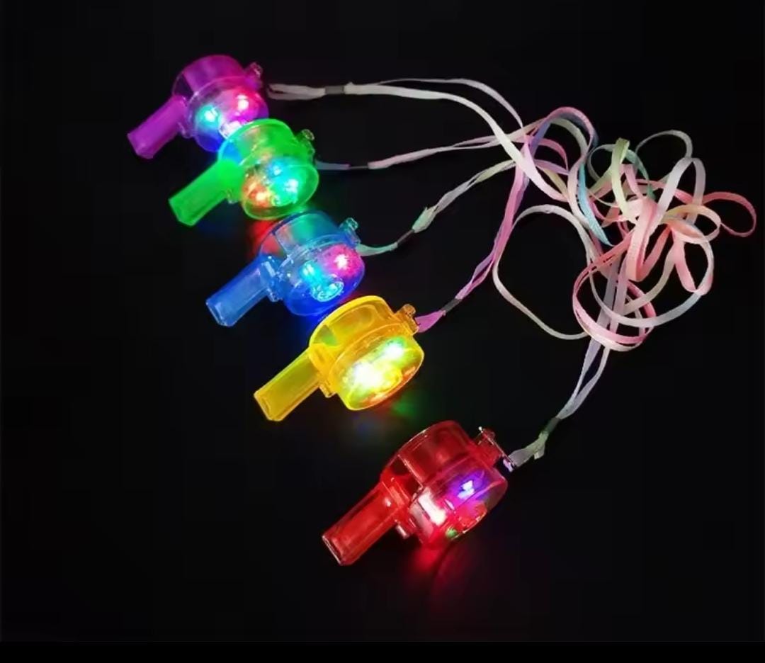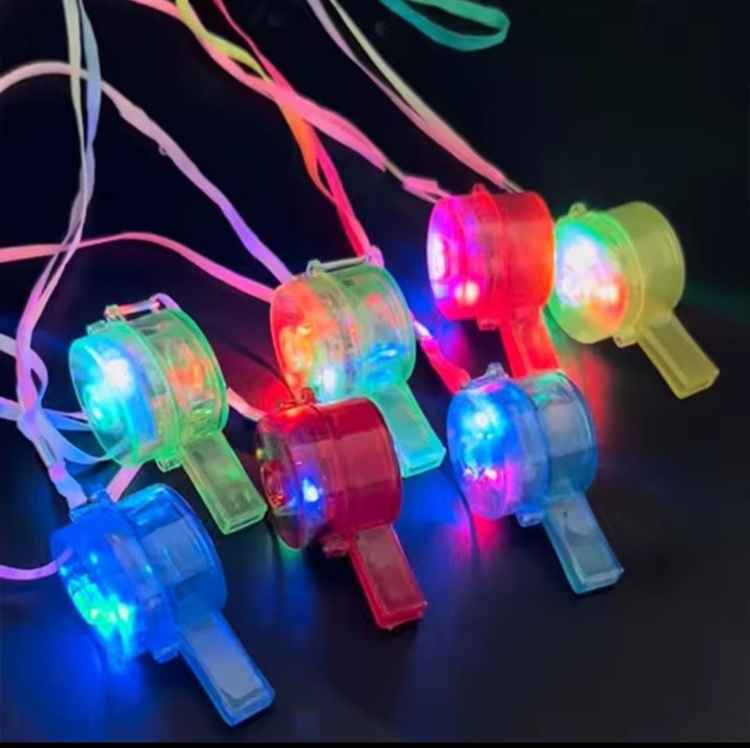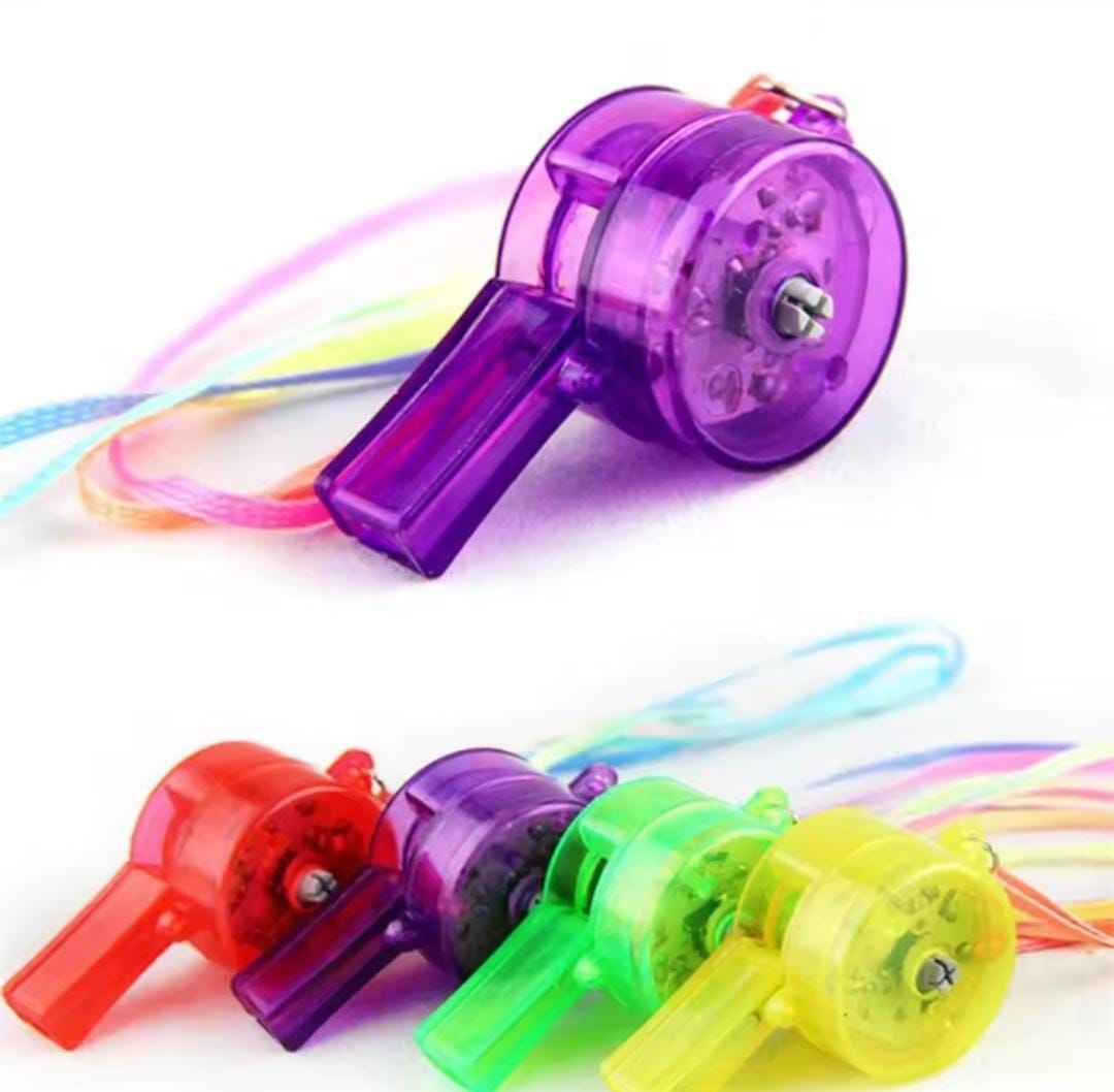 Pitos plásticos con luces cuentan con botón de encendido y apagado, por la compra de 6 docenas lleva 1 docena GRATIS!