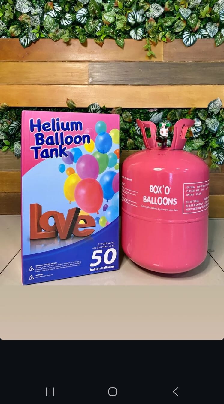 Tanque de Helio con capacidad para 50 globos de 9″ látex (no es recargable).