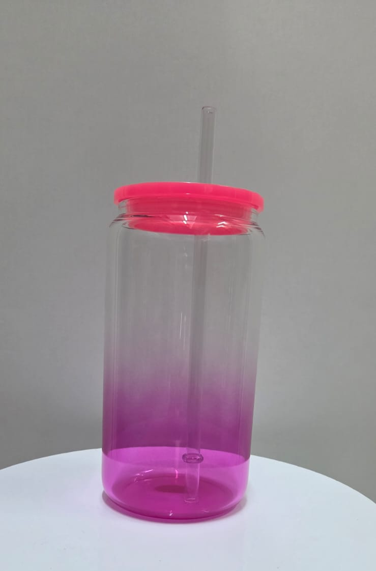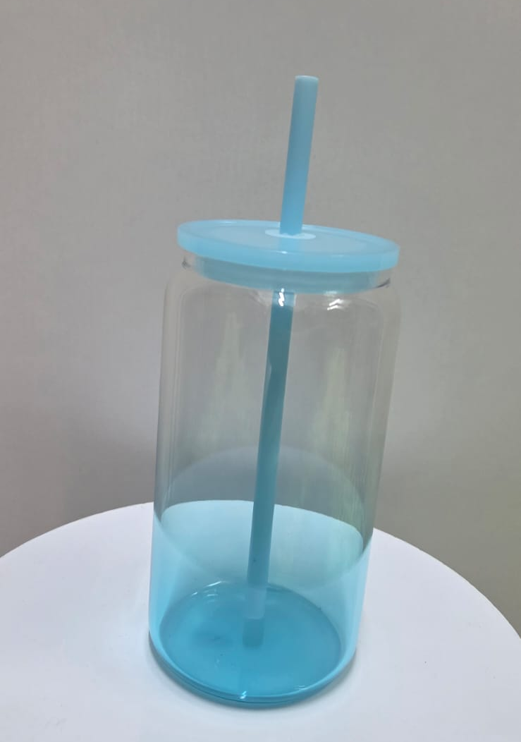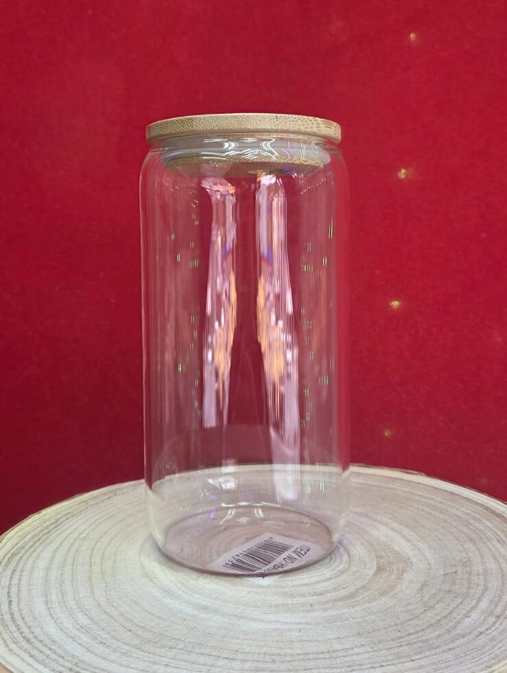 Vasos de Vidrio con tapa de bambo y carrizo de vidrio , 16 onz
