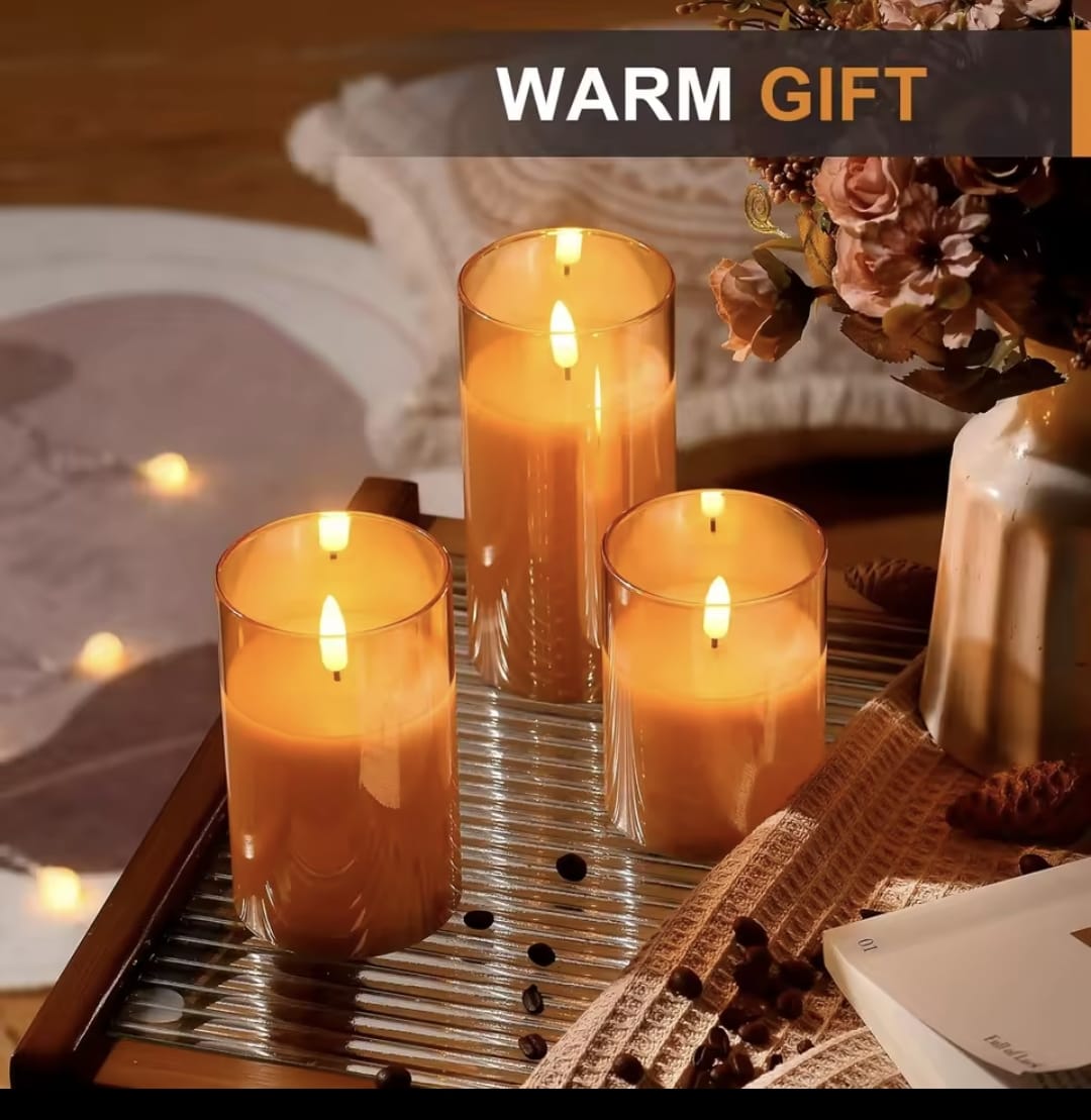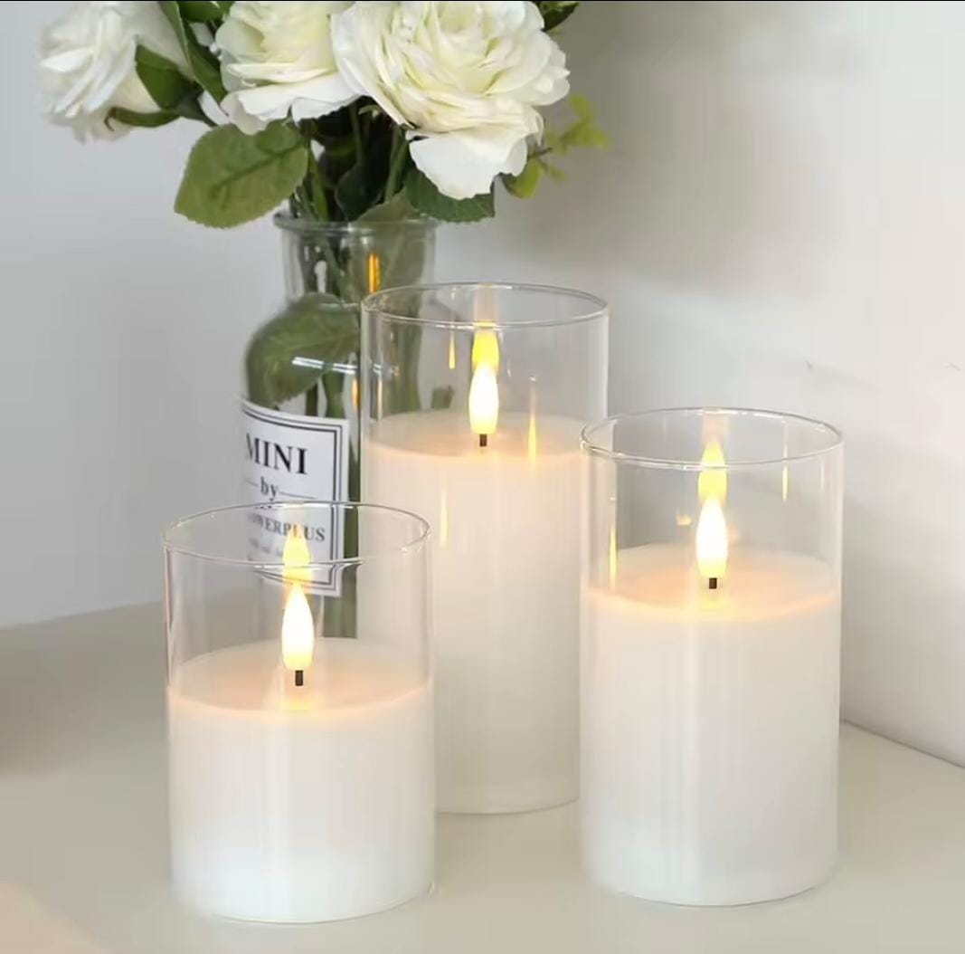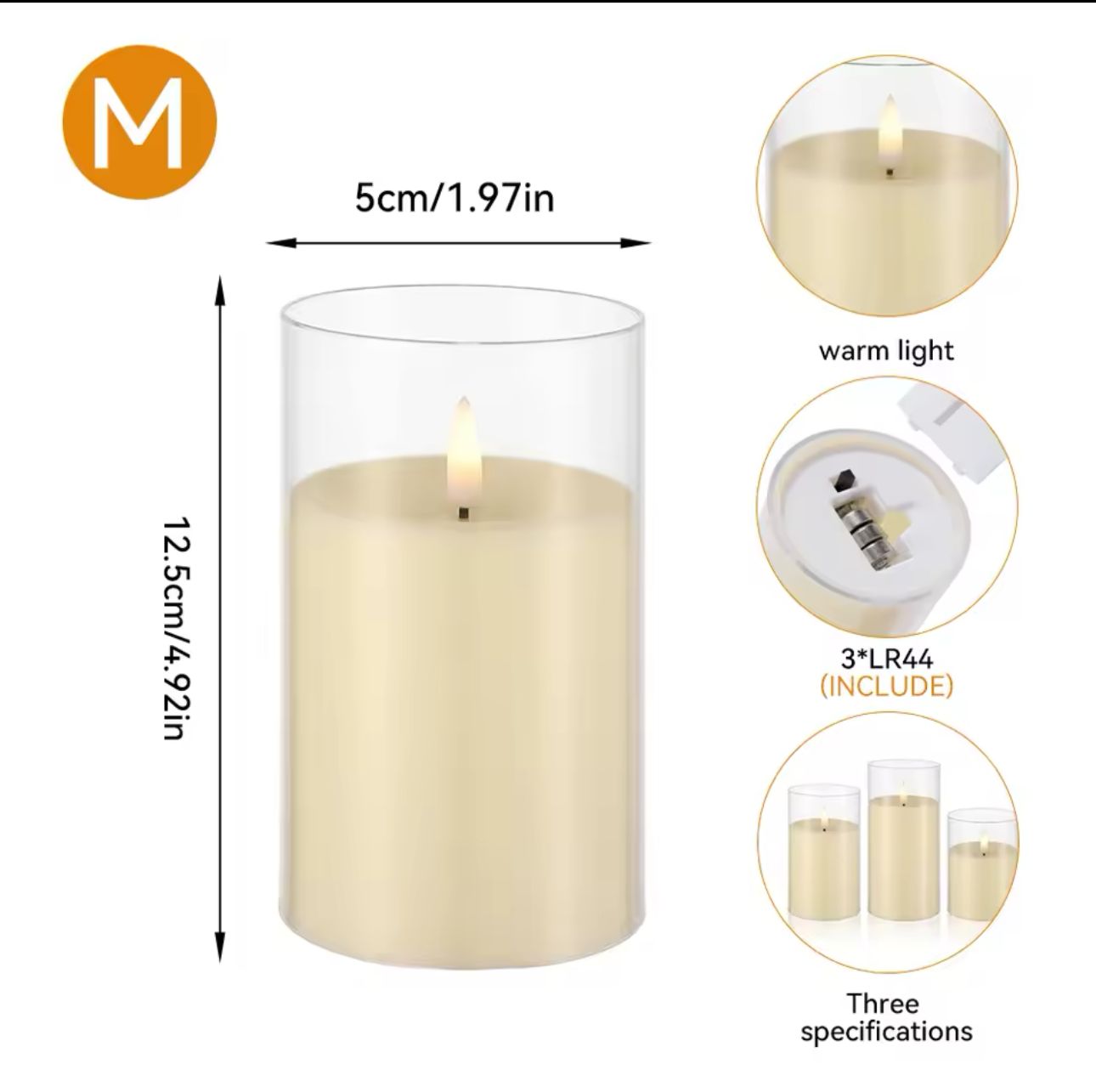 Velas artificiales en cilindro de vidrio funcionan con batería AAA